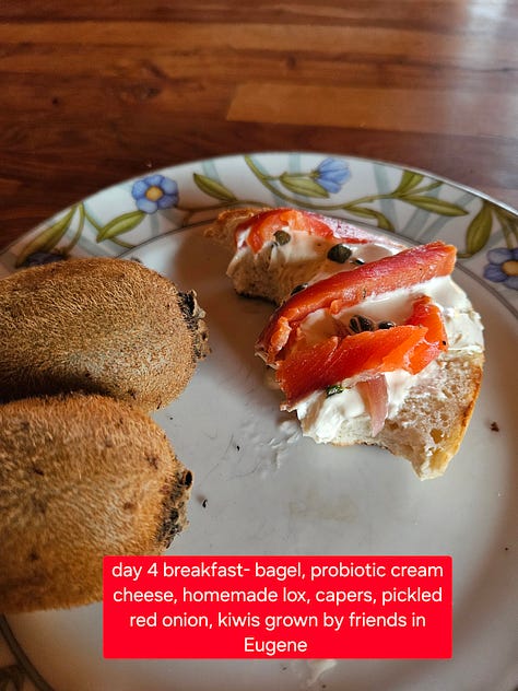 Day 2- We predominantly eat local meat except for one instance- fish. We love buying Wild Coho Salmon from the Fish Princess when she comes into town or at Fill Your Pantry. I also buy the Patagonia Provisions mackerel, sardines, and anchovies, as these small oily fish are very sustainable and full of good fats, vitamins, and minerals. They make an easy protein source.