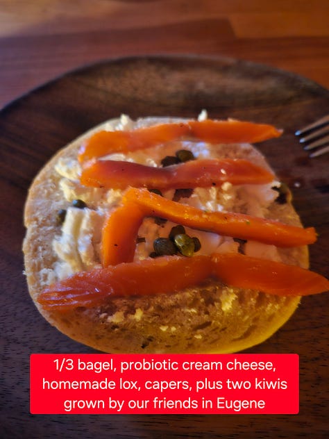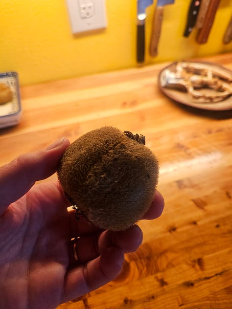 Oh, and the kiwis! Our very dear friends Little Wings farm in Eugene, OR have a large kiwi planting and traded us 10lbs of kiwis for the equivalent price in meat (some venison and some pork) when we last visited. I have been gorging on them ever since.