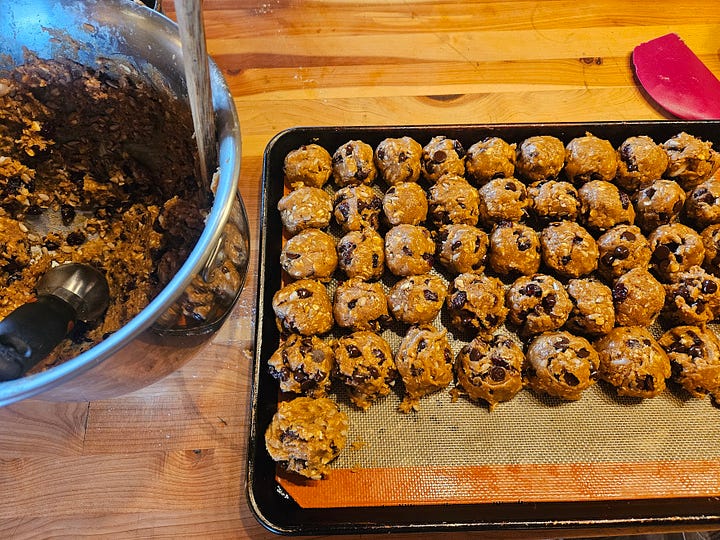 Day 3 was full of so much cooking and disjointed meal eating. For the second year, a group of farmer women has gotten together to make and freeze meals to feed our future, frazzled, sunbaked farmer selves. To ensure that we eat nourishing meals even when we are most busy. We individually prepped fillings for tamales, burritos, and empanadas, then we all came together to swap fillings and assemble the goods. I also made a side of “Megan’s Everything Cookies.” I’ll make a separate post about our food prep extravaganza.